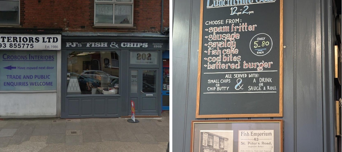 ⭐️⭐️⭐️⭐️⭐️ Absolutely top-notch fish & chips with the friendliest service in town! Just had an amazing meal at PJ’s on Northgate Street in Great Yarmouth, and I honestly can’t recommend it enough. We ordered a bit of everything… fish and chips, ribs, and a children’s battered sausage and chips… and everything was cooked to perfection. The fish was fresh with a beautifully crispy batter, the ribs were tender and full of flavour, and even the kids’ sausage and chips went down a treat! But what really stood out for me was the exceptional service. The two girls working there, Zoe and Robyn, were absolutely brilliant… so friendly, welcoming, and genuinely lovely to chat with. I was so impressed with how kind and attentive they were that I had to ask their names. It’s not often you walk away from a chippy not just full but smiling because of the people too! PJ’s is a real gem in Great Yarmouth – great food, great prices, and the kind of service that makes you want to come back again and again. Thank you Zoe and Robyn for making our visit such a pleasure!